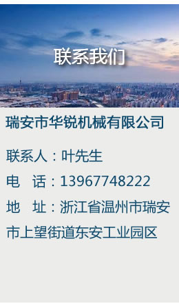 瑞安市華銳機械有限公司的誠信、實力和產品質量獲得業界的認可。歡迎各界朋友蒞臨參觀、指導和業務洽談......【查看詳情】